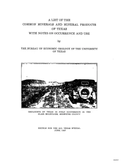 A List of the Common Minerals and Mineral Products of Texas with Notes on Occurrence and Use